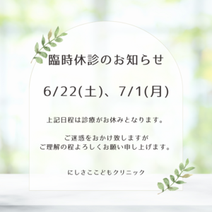 また、7月1日月曜日も院長がサロマウルトラマラソンにチャレンジするため、臨時休診致します。