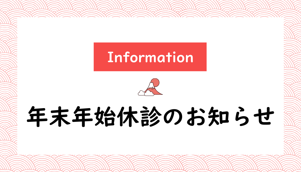 年末年始休診日のおしらせ クリニックお知らせ 2025.11.19 12月28日(日)〜1月4日(日)の間は年末年始休診日となります。ご迷惑をおかけしますが、ご理解の程よろしくお願いいたします。 にしさここどもクリニック 院長 西迫 良